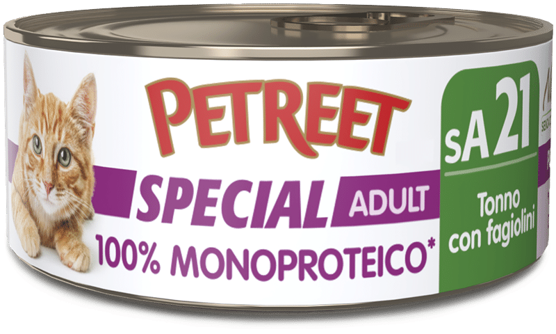 Alimento 100% monoproteico con tonno e fagiolini cotto in gustosa salsa naturale.