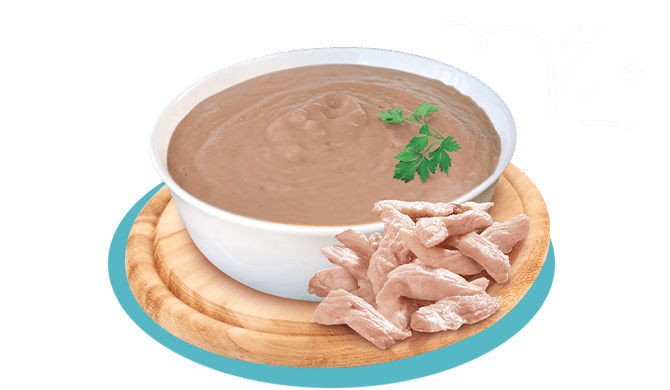 Gustosa crema realizzata con pregiato petto di pollo, ideale anche per gatti con problemi di masticazione.