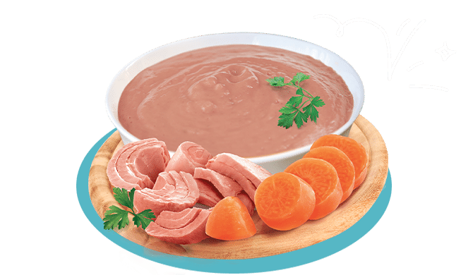 Gustosa crema al tonno Pinne Gialle con carote, ideale anche per gatti con problemi di masticazione.