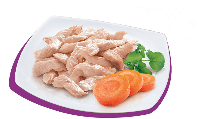 Alimento 100% monoproteico con pollo e carote cotto in gustosa salsa naturale.