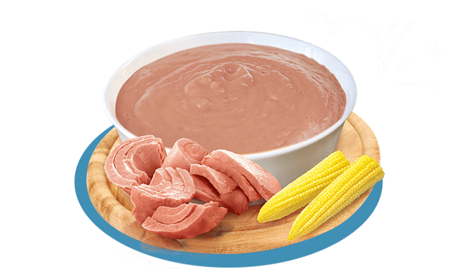 Alimento completo in crema con pregiato tonno e mais, ideale per gatti sterilizzati.