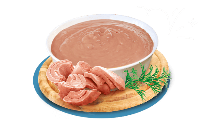 Alimento completo in crema con pregiato tonno, ideale per gatti sterilizzati.