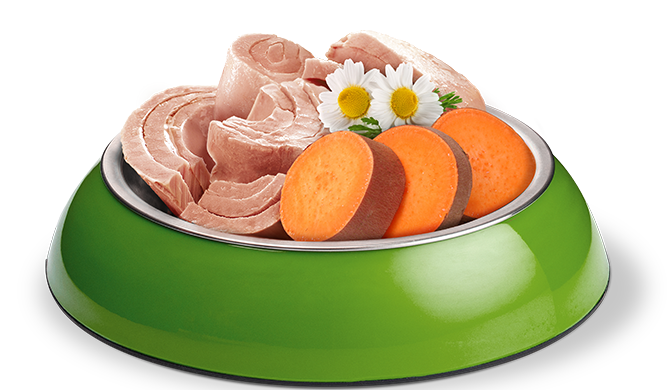 Alimento funzionale a base di tonno con patate dolci e camomilla, arricchito con taurina, per favorire il corretto funzionamento della retina, fondamentale per una buona vista.